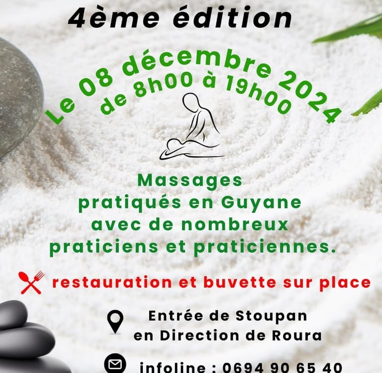Situé à l'entrée de Stoupan (en direction de Roura), l'événement a accueilli les visiteurs de 8h00 à 19h00 pour une immersion totale dans le soin de soi. Avec une entrée gratuite, le salon a su démocratiser l'accès au bien-être tout en proposant des prestations de haute qualité.